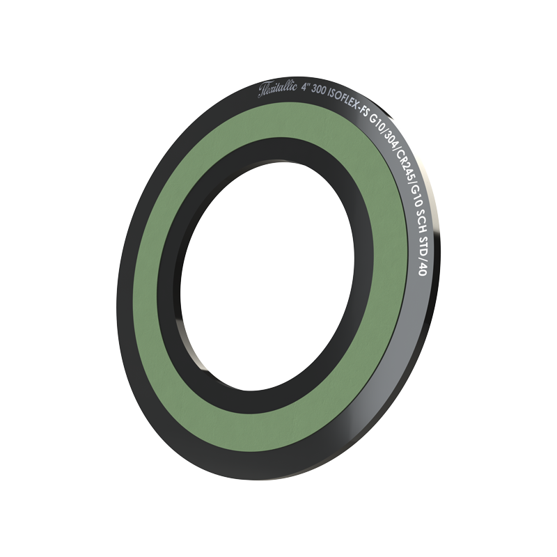 Flexitallic har konstruerat ISOFLEX®-FS med två kamprofilskärnor i metall (Flexpro®) och klätt dem med Corriculite™ – ett brandsäkert och icke-ledande material som kombinerar effektiv tätning med långvarigt korrosionsskydd. En polyimidfilm separerar kärnorna och säkerställer elektrisk isolering med mycket hög dielektrisk styrka, upp till cirka 3000 V/mil. Inre och yttre ringar i glasfiberförstärkt epoxi (GRE) enligt NEMA-standard ger packningen stabilitet och korrekt positionering vid montering.